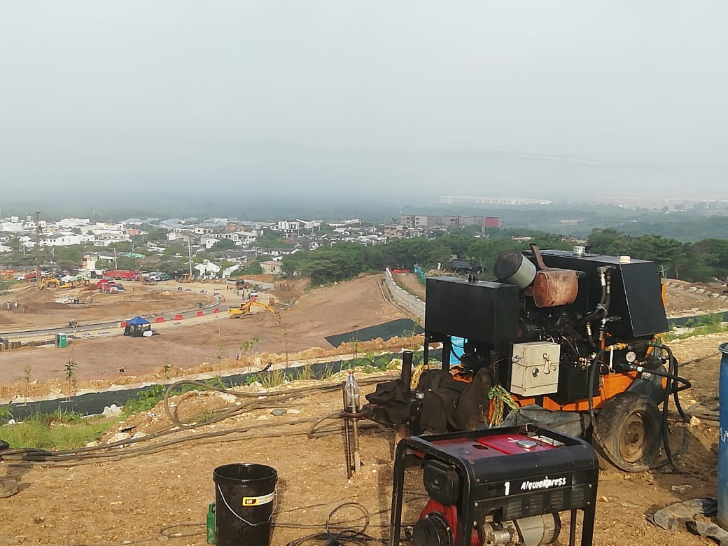 Construcción de Micropilotes, Construcción de drenes horizontales y verticales dentro de Caissons de 8 m de diámetro, Perforación e Instalación de piezómetros e inclinómetros a lo largo de la Carrera 38 en Barranquilla